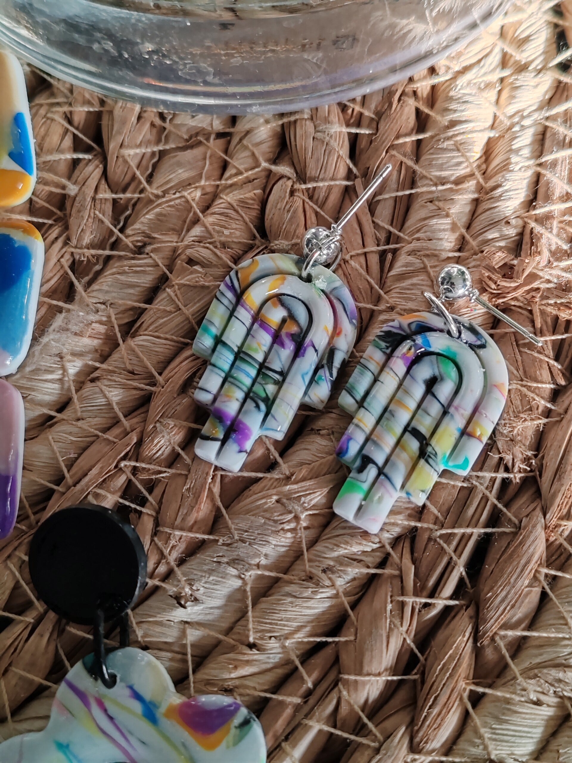 Boucles d’oreilles en pâte polymère – Création unique multicolore aux tons vifs