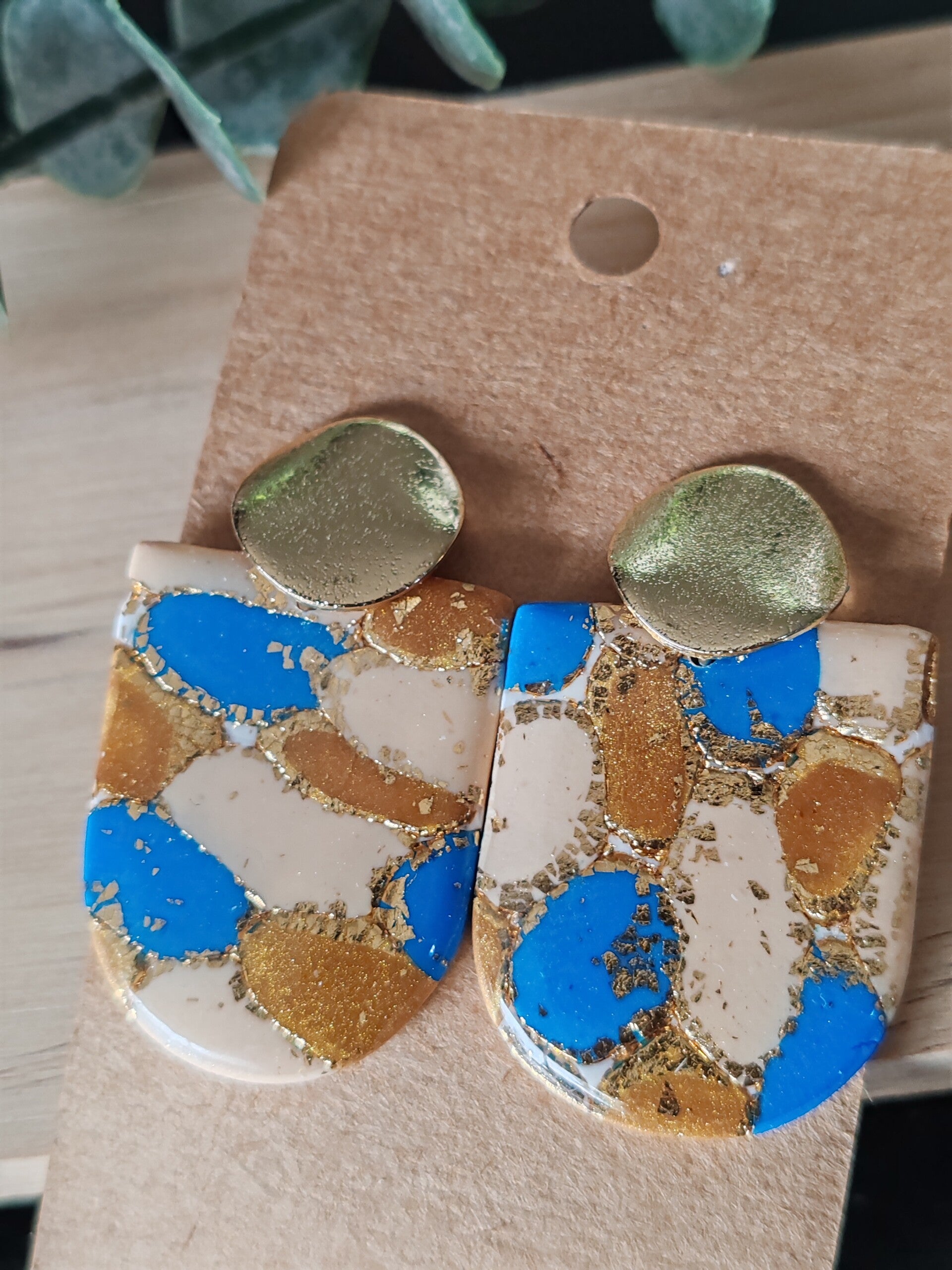 Boucles d’oreilles en pâte polymère – Création unique bleu, ocre et nude