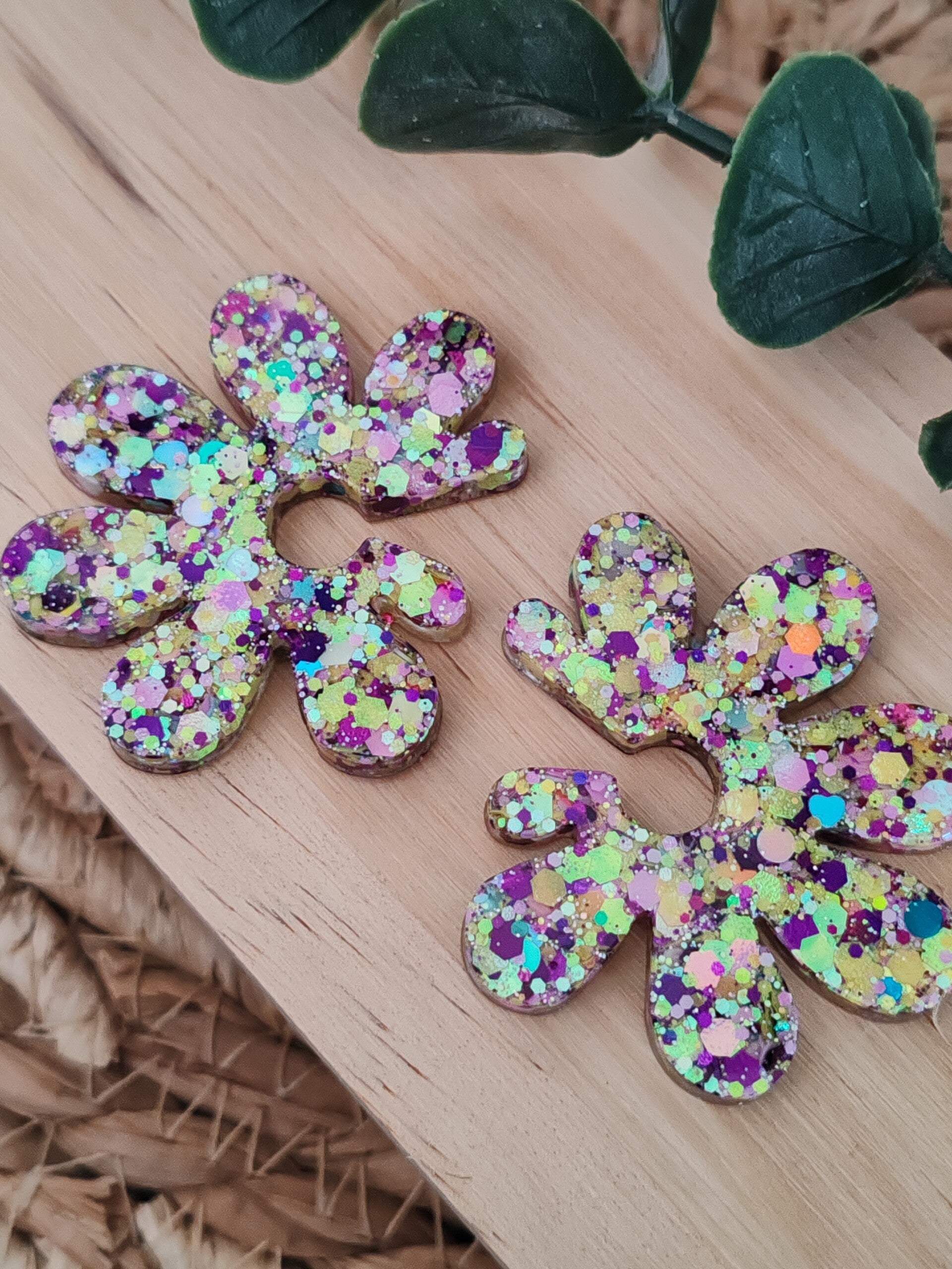 Boucles d’oreilles Flowers Pop – Bijou fantaisie multicolore à paillettes