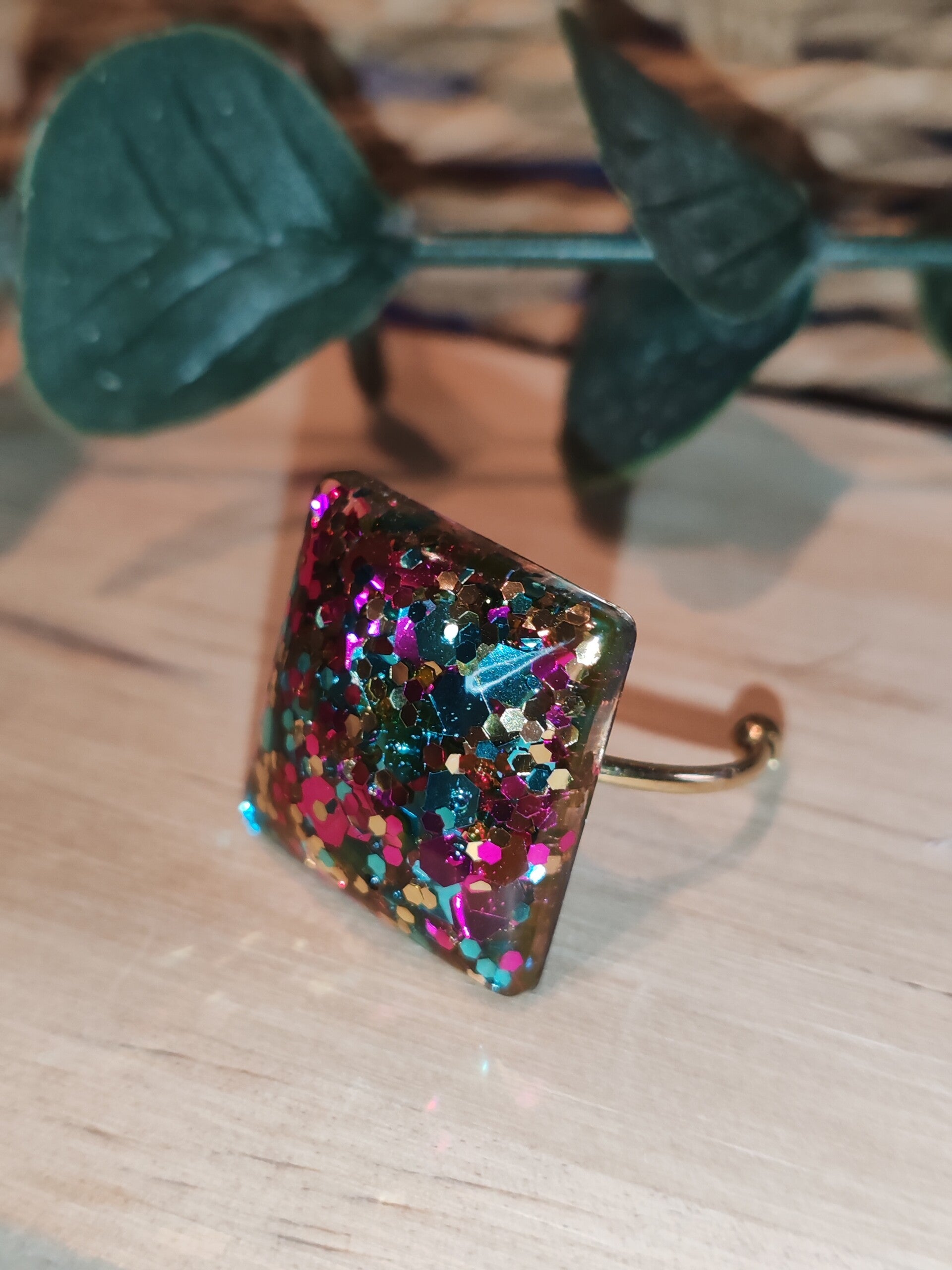 Bague en résine pailletée – Bijou fantaisie coloré et pétillant