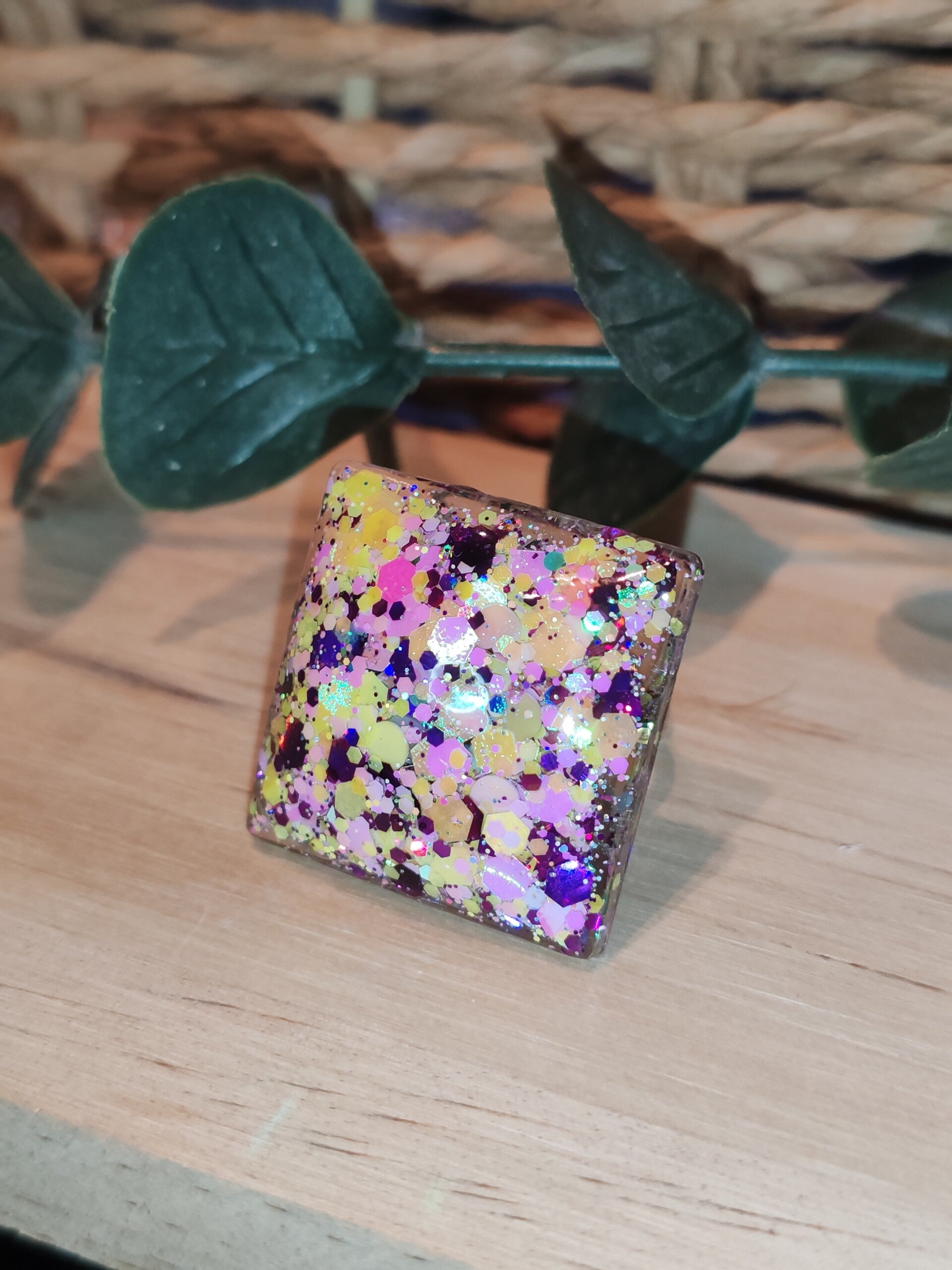 Bague en résine pailletée – Bijou fantaisie coloré et pétillant