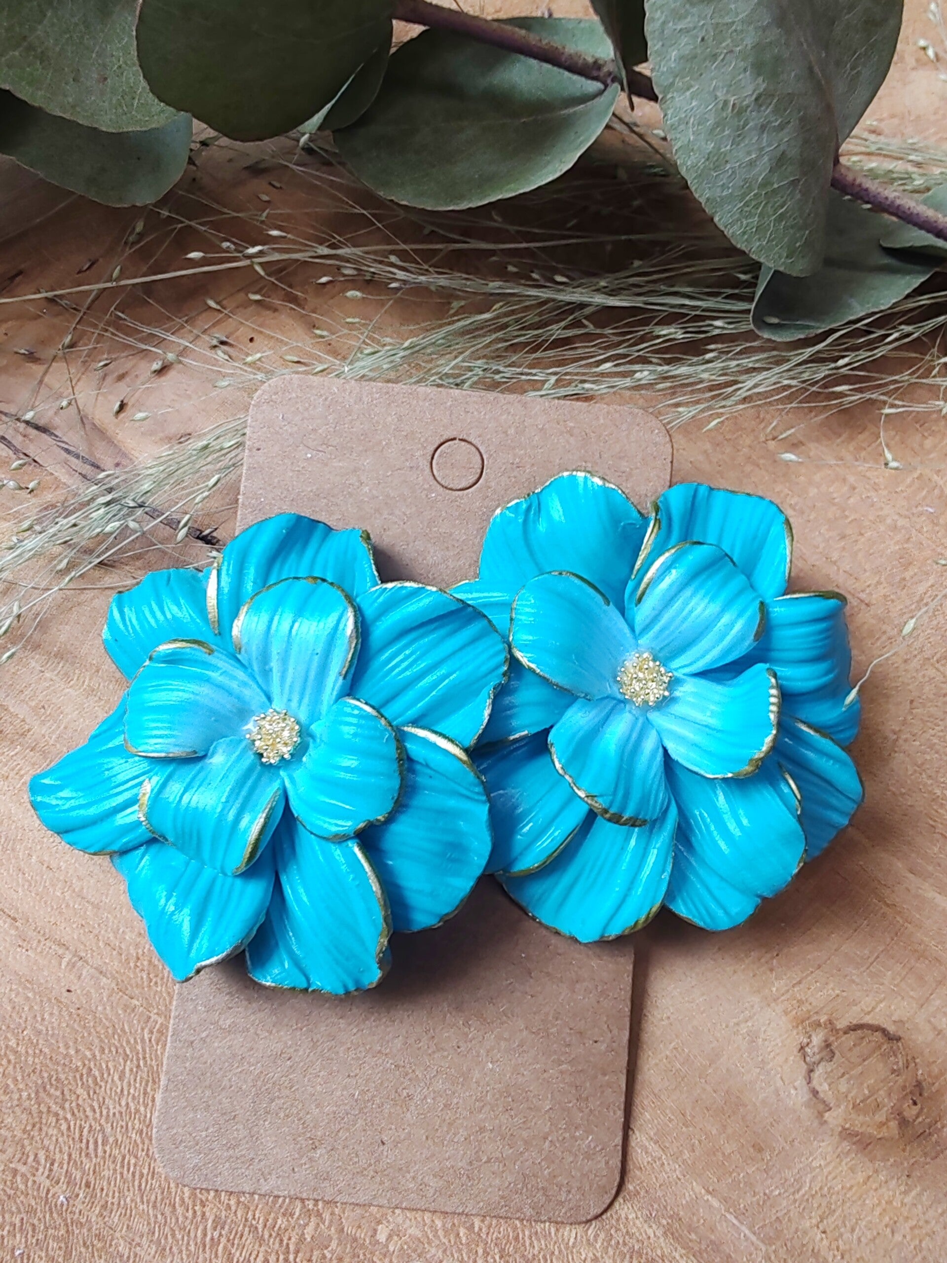 Inspirées par la chaleur des beaux jours et les nuances vibrantes de l'été, ces boucles allient couleurs vives et formes modernes, pour un look tendance et joyeux. Chaque paire est modelée et assemblée à la main dans notre atelier, ce qui en fait une pièce artisanale unique.